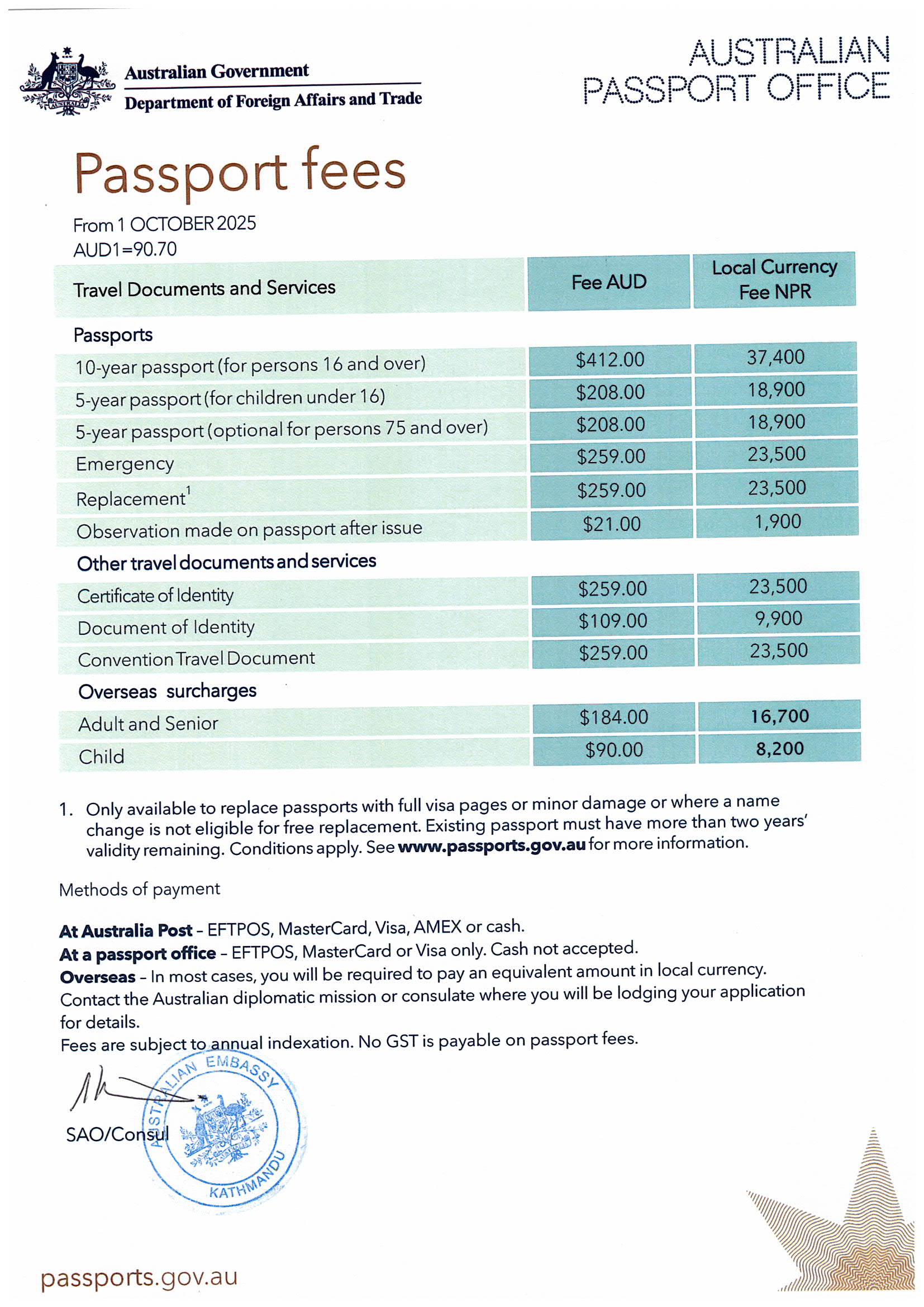 If you do not meet the above criteria, this option is not available to you, and you must lodge your Australian passport application in person at the Australian Embassy in Kathmandu, Nepal