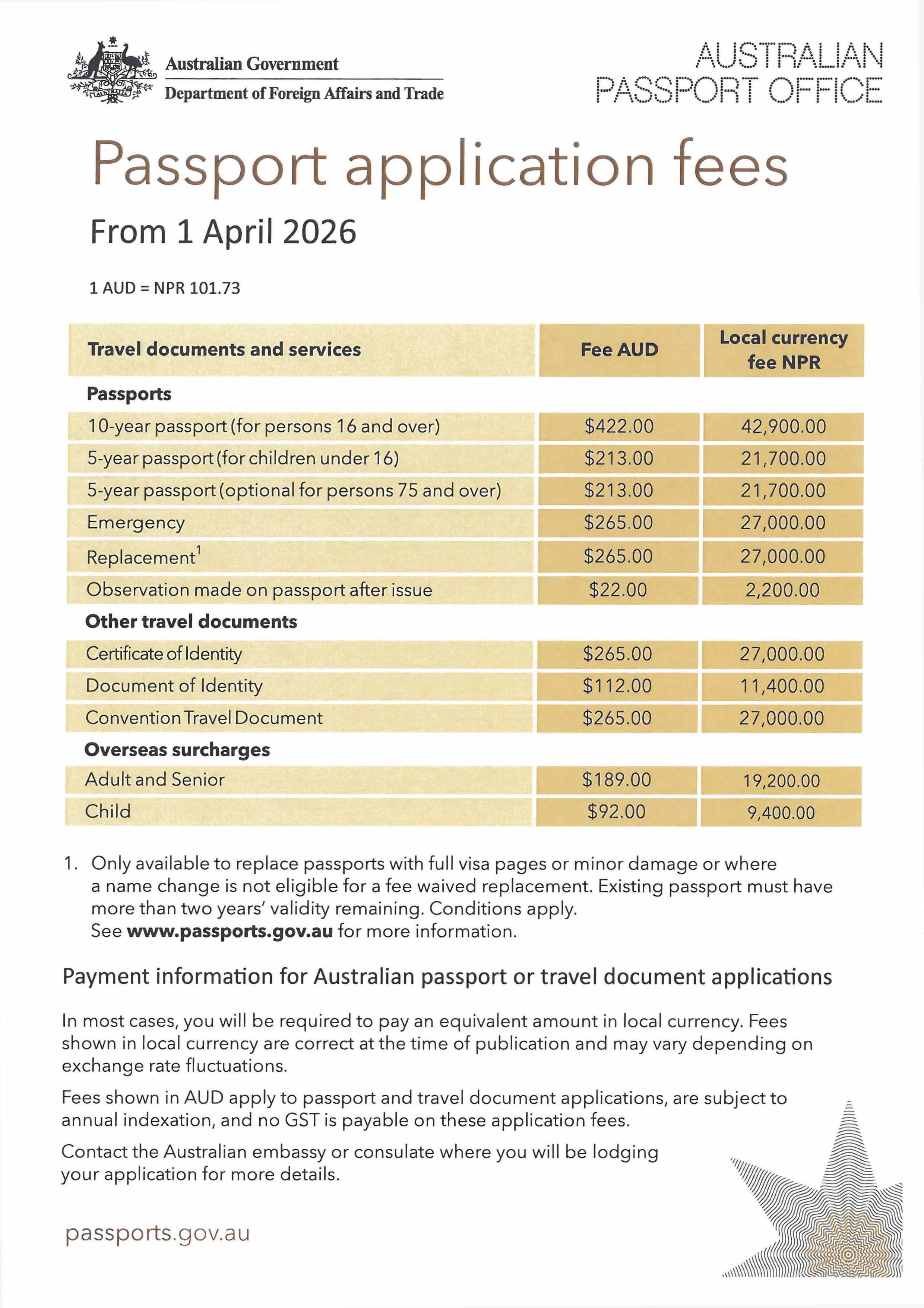 If you do not meet the above criteria, this option is not available to you, and you must lodge your Australian passport application in person at the Australian Embassy in Kathmandu, Nepal