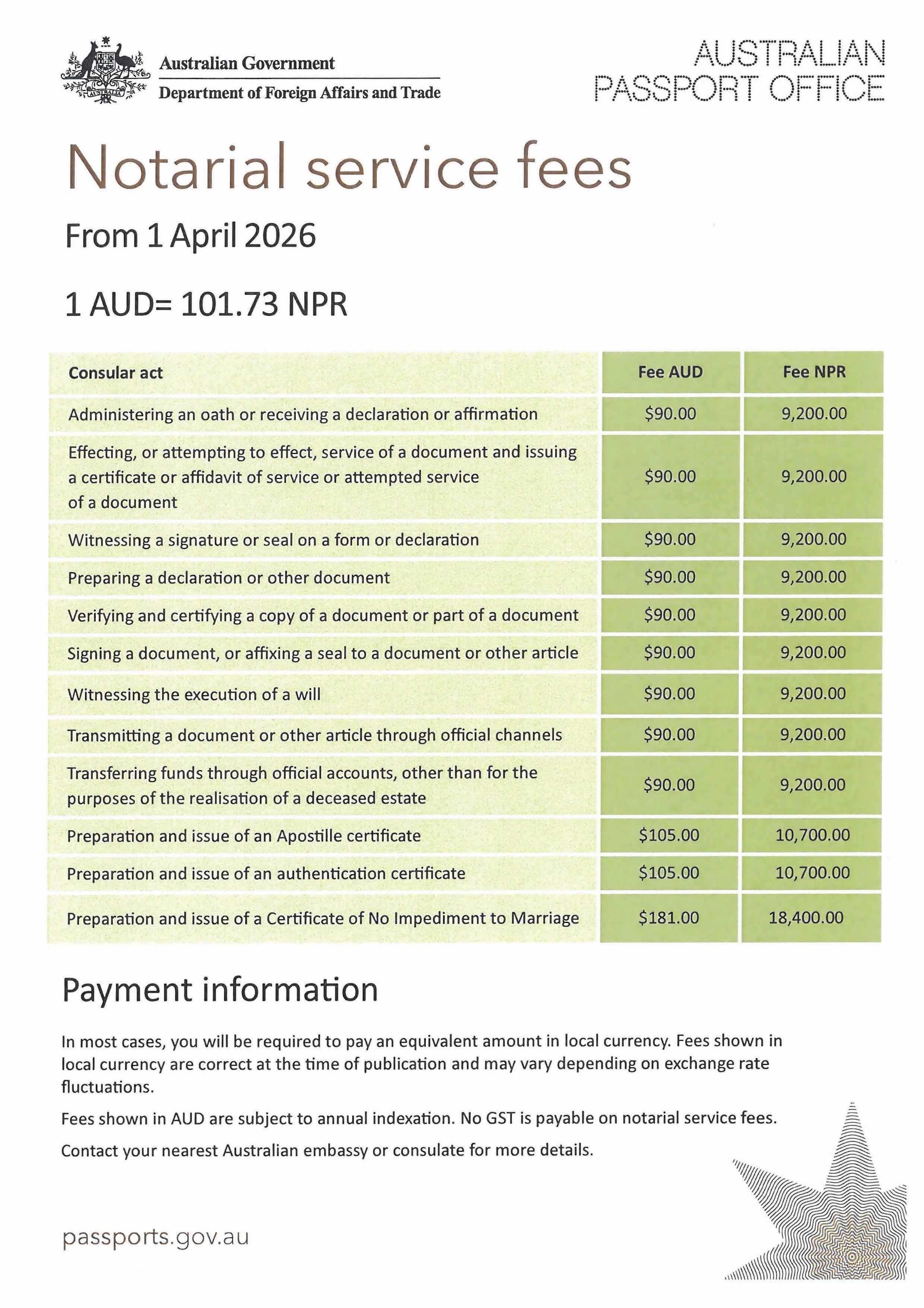 For details on the services offered, refer to Notarial Services Overseas.